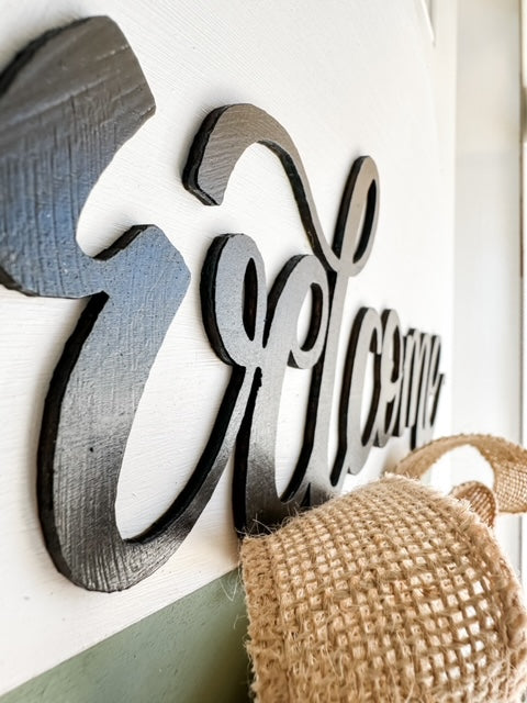 Our 12" welcome sign is so simple yet so sweet! The raised lettering brings such life to this sign. With this on your door, everyone is sure to feel a warm embrace and a feeling of welcome as they step into your home.